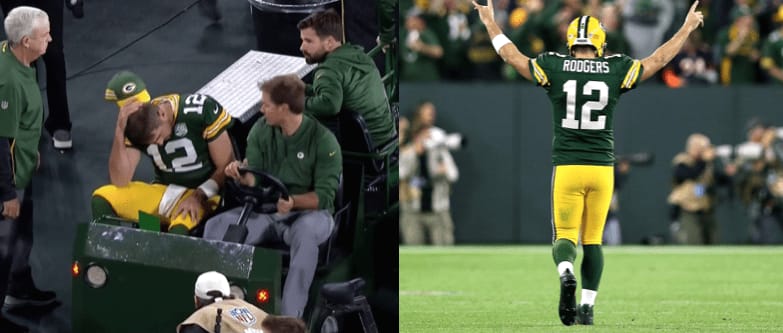 Well, in the second half, he walked back onto the field. After assessing with the doctor, he realized he was going to be ok to play in the game. Can you even image the adrenaline he had pumping through him at that point? The leader of the Green & Gold had work to be done…and he made it happen.