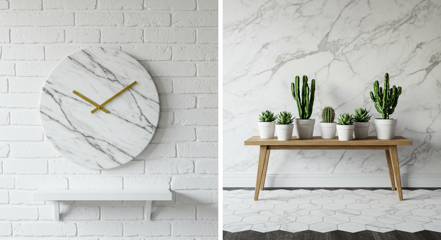 If this is the year to redo your bathroom or kitchen, you may want to consider the use of marble tiles or countertops. The stone has a very classic and clean look to it. If a big project isn't on the horizon, there are still ways to incorporate marble into your decor.
