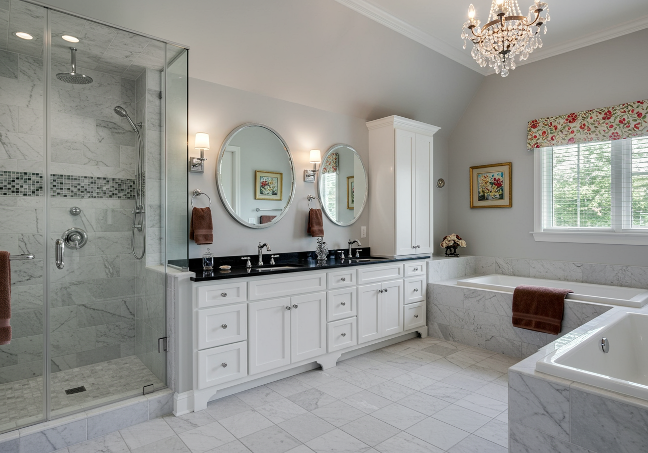 It's a hard choice between the large walk-in shower and jetted soaking tub.