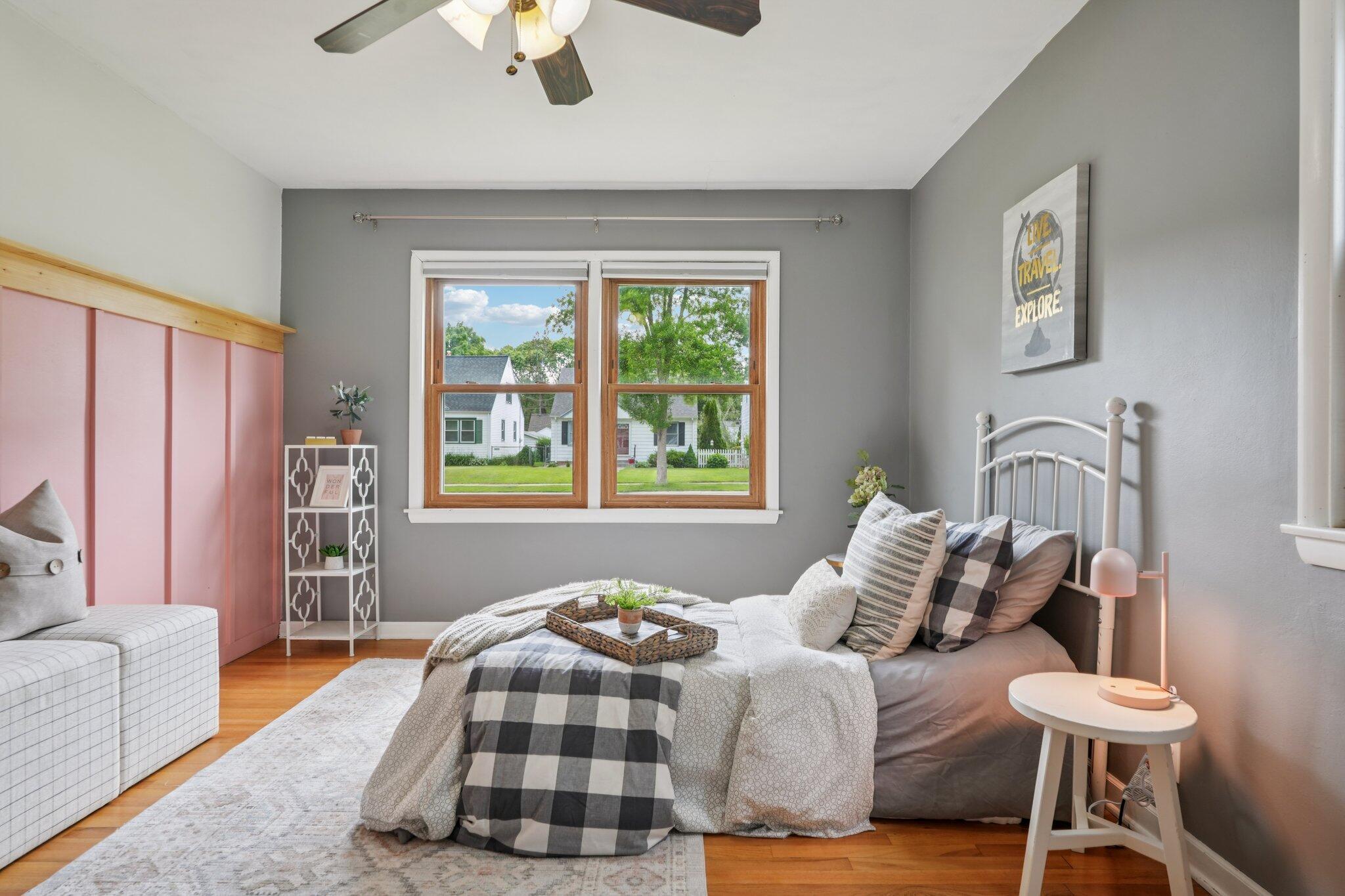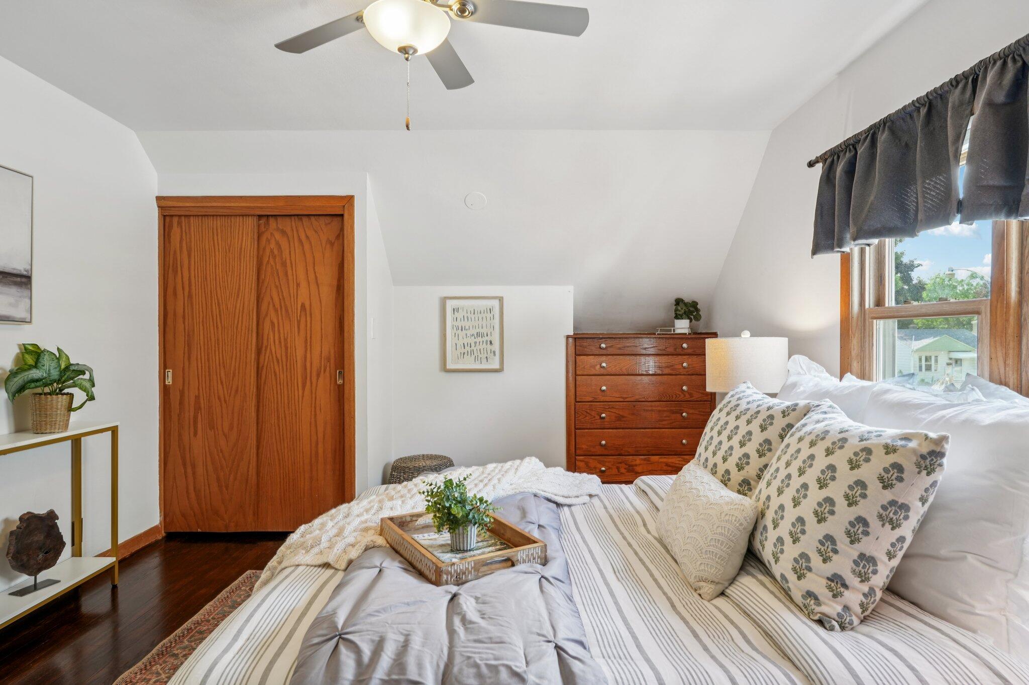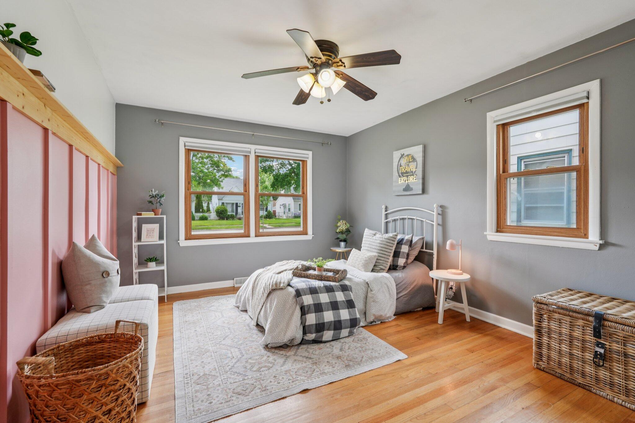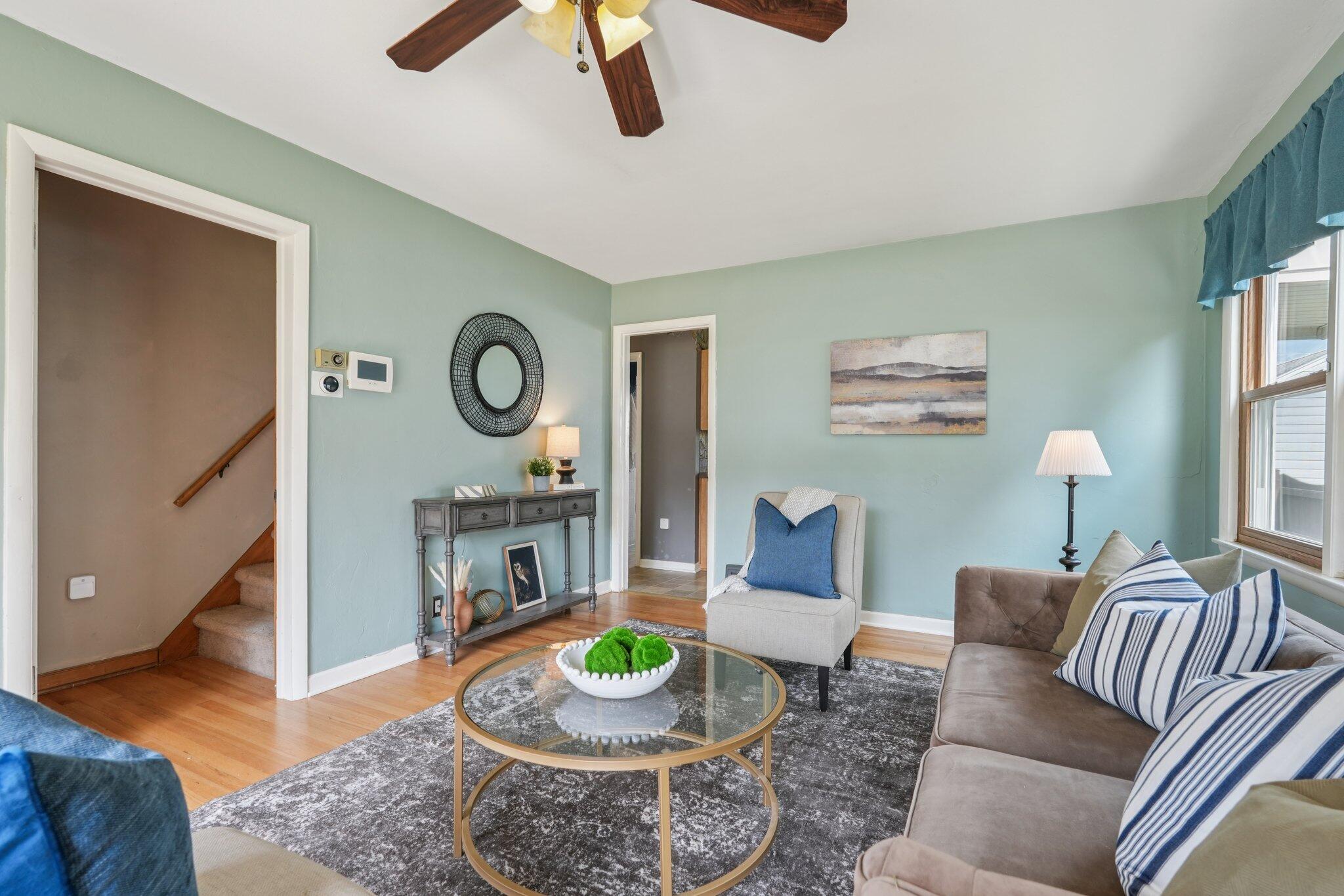 Cute-as-can-be charmer in coveted Kops Park, just a block to the playground and minutes to Cooper Park fun! Sun-splashed rooms boast hardwood floors, crisp trim and abundant windows. Updated eat-in kitchen offers ample cabinets and a handy side door to the fenced yard. Retreat upstairs to the dreamy primary suite with walk-in closet plus spa-style bath featuring tiled walk-in shower and great storage. Two main-floor bedrooms flank an updated full bath. Finished lower level adds movie-ready rec room with built-in speakers and bar area and plentiful storage. Enjoy summer on the patio inside a spacious, private, fully fenced yard. 1.5-car garage + parking pad for 2-3 more. Love living near parks, restaurants and quick commutes via nearby arterials near city hot spots.