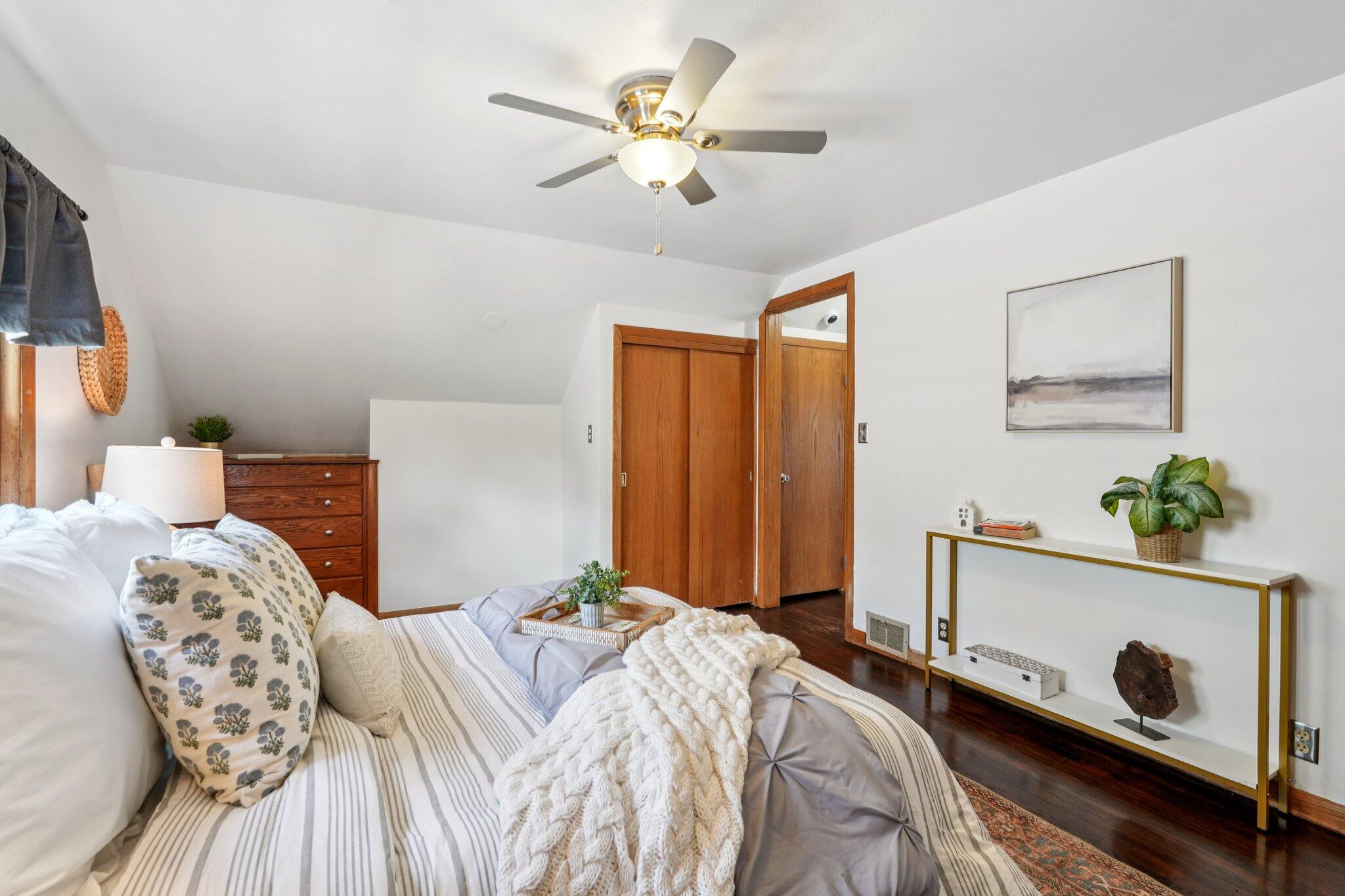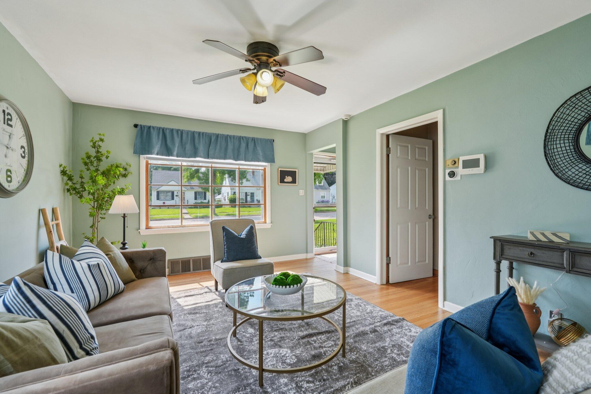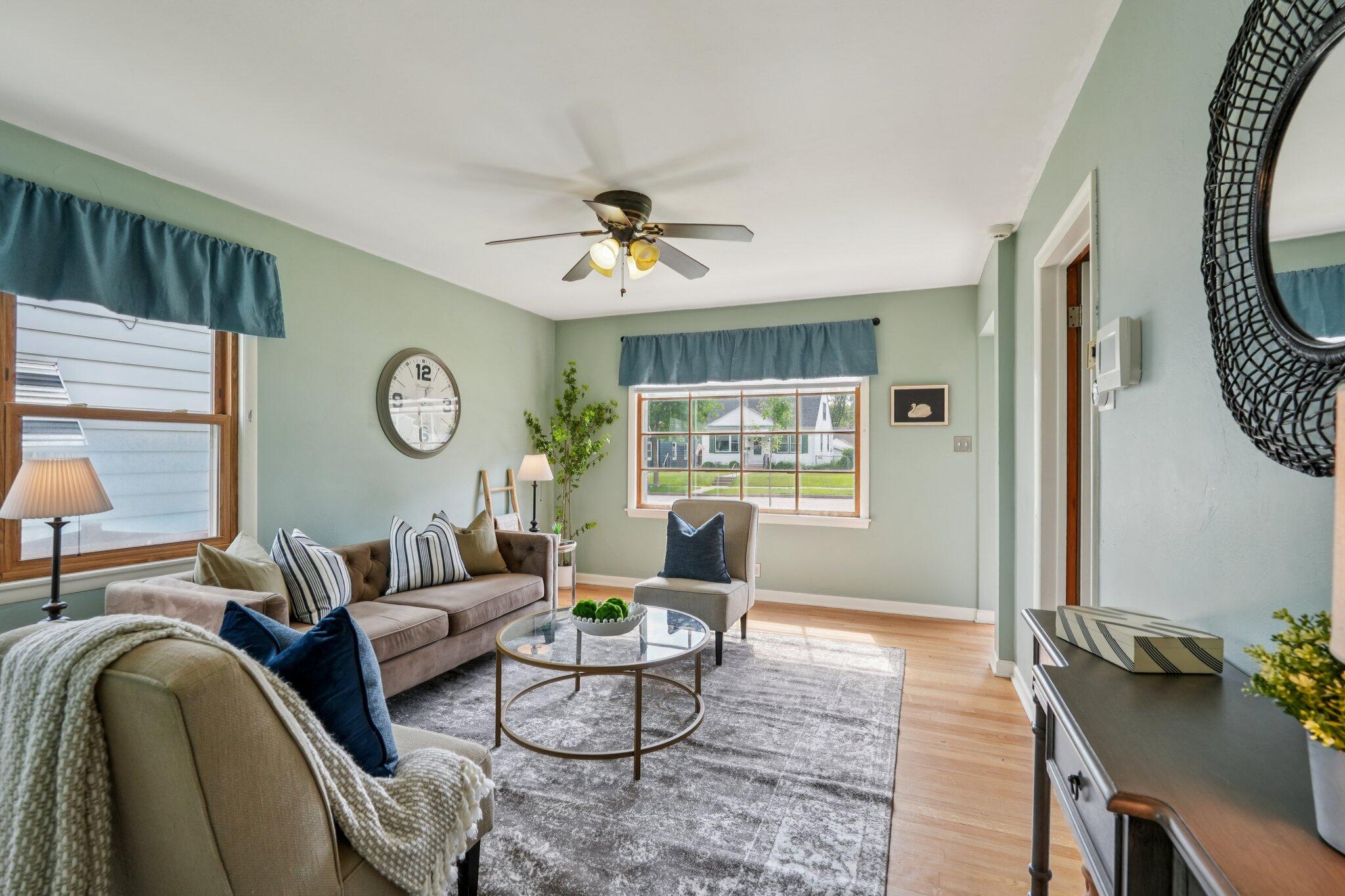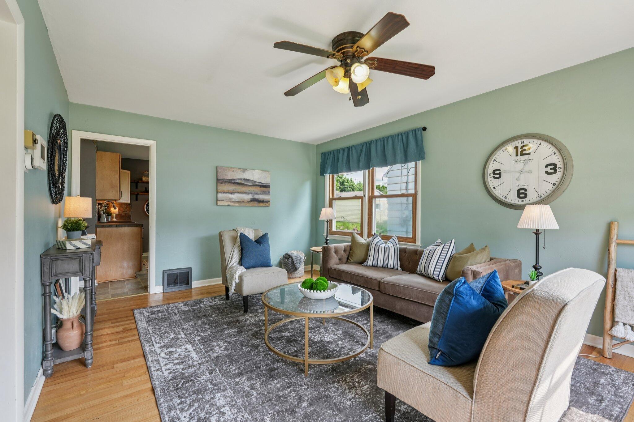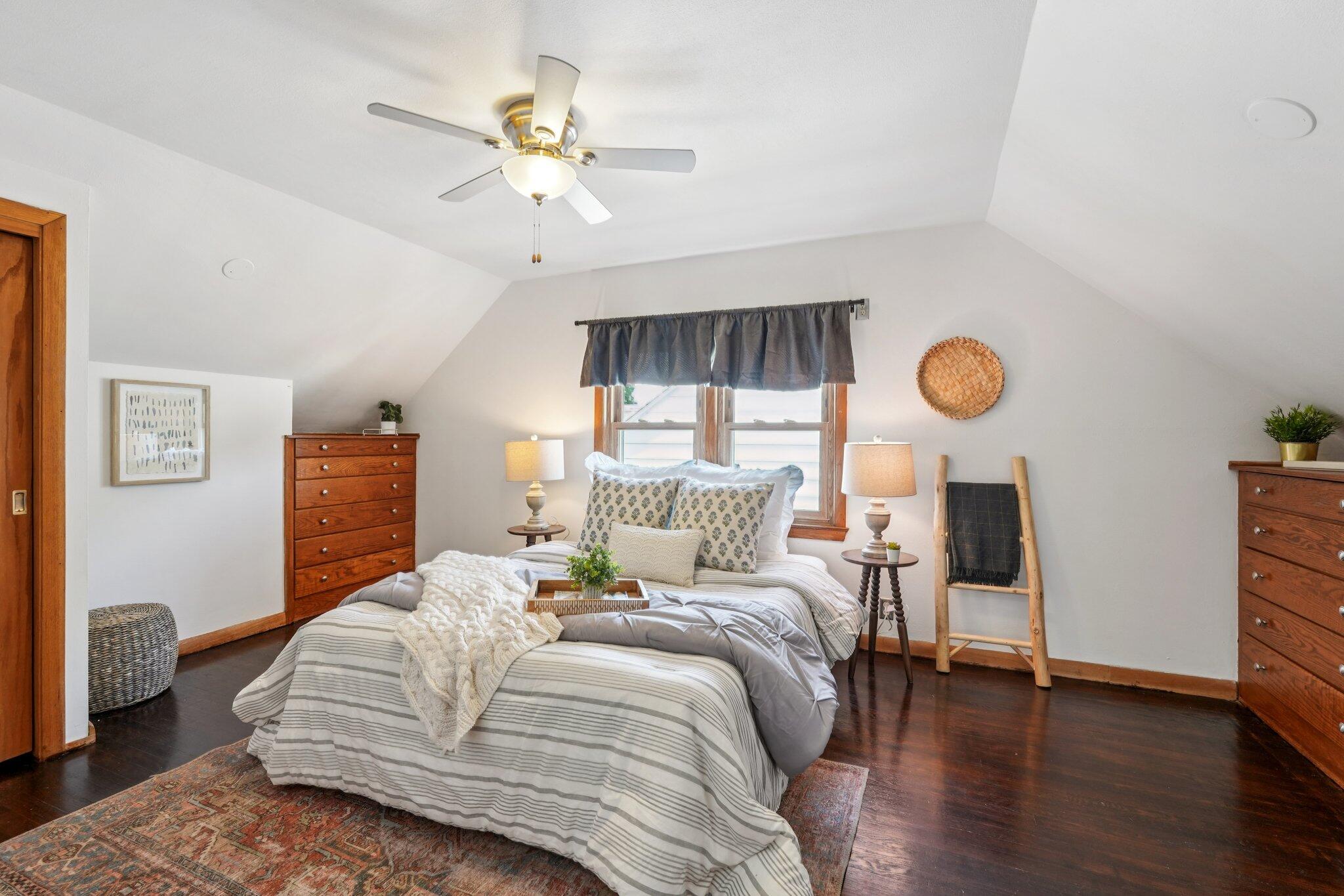 Cute-as-can-be charmer in coveted Kops Park, just a block to the playground and minutes to Cooper Park fun! Sun-splashed rooms boast hardwood floors, crisp trim and abundant windows. Updated eat-in kitchen offers ample cabinets and a handy side door to the fenced yard. Retreat upstairs to the dreamy primary suite with walk-in closet plus spa-style bath featuring tiled walk-in shower and great storage. Two main-floor bedrooms flank an updated full bath. Finished lower level adds movie-ready rec room with built-in speakers and bar area and plentiful storage. Enjoy summer on the patio inside a spacious, private, fully fenced yard. 1.5-car garage + parking pad for 2-3 more. Love living near parks, restaurants and quick commutes via nearby arterials near city hot spots.
